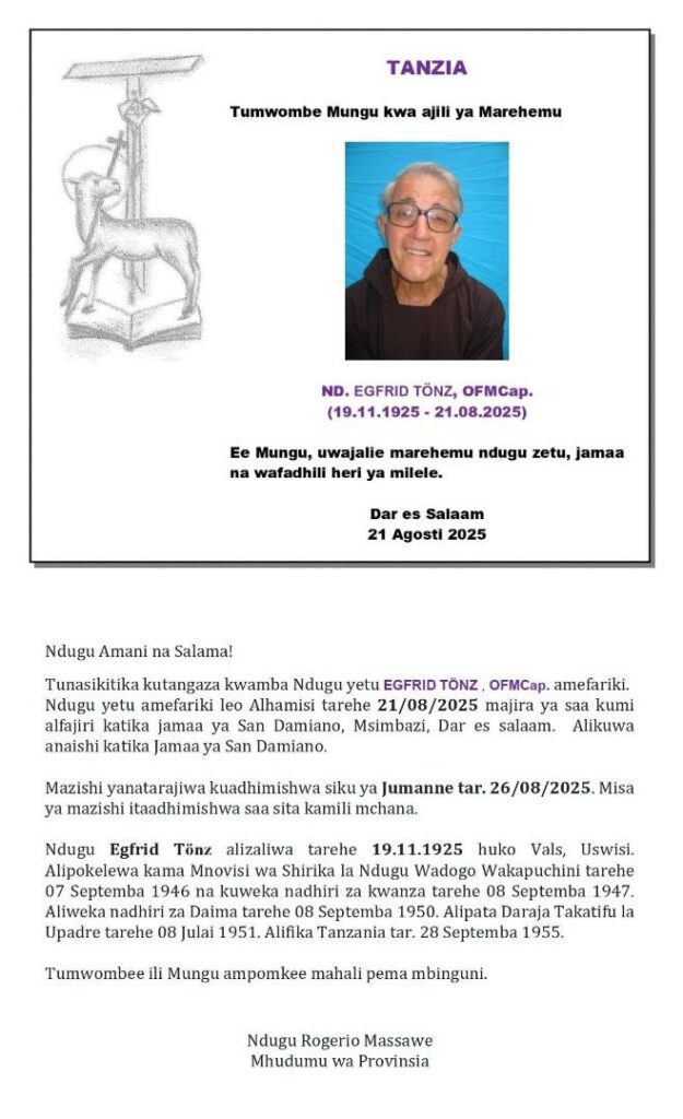 Home MAKALA Video R.I.P PADRE EGFRID ‘Alibakiza miezi miwili kutimiza miaka 100’ Angelo Aug 22, 2025 0